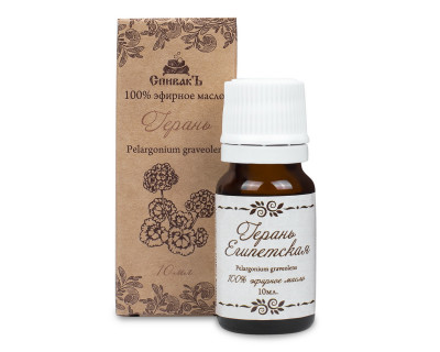 Эфирное масло герани получают методом паровой дистилляции свежескошенной надземной части растений пеларгонии (герани) розовой — Pelargonium roseum Wild., (семейство гераниевые – Geraniaceae). Масло обладает многогранным и непростым ароматом, который сочетает в себе пряные, лимонные, сладкие и свежие ноты. Масло герани идеально подходит для ухода за сухой, поврежденной или чувствительной кожей: помогает убрать сыпь, воспаление и шелушение. Особенно сильно это свойство проявляется при сухой экземе. Рекомендуется при ожогах и обморожениях как регенерирующее средство, эффективно при герпесе. Масло герани обладает антицеллюлитными свойствами. Также эфирное масло герани способствует повышению умственной и физической активности, помогает справиться с чувством страха и снимает напряженность при переутомлении или нервном истощении, т.е. является антидепрессантом. Считается эффективным средством для профилактики и лечения инфекционных заболеваний ЛОР-органов (фарингит, ларингит, тонзиллит, синусит, гайморит, о