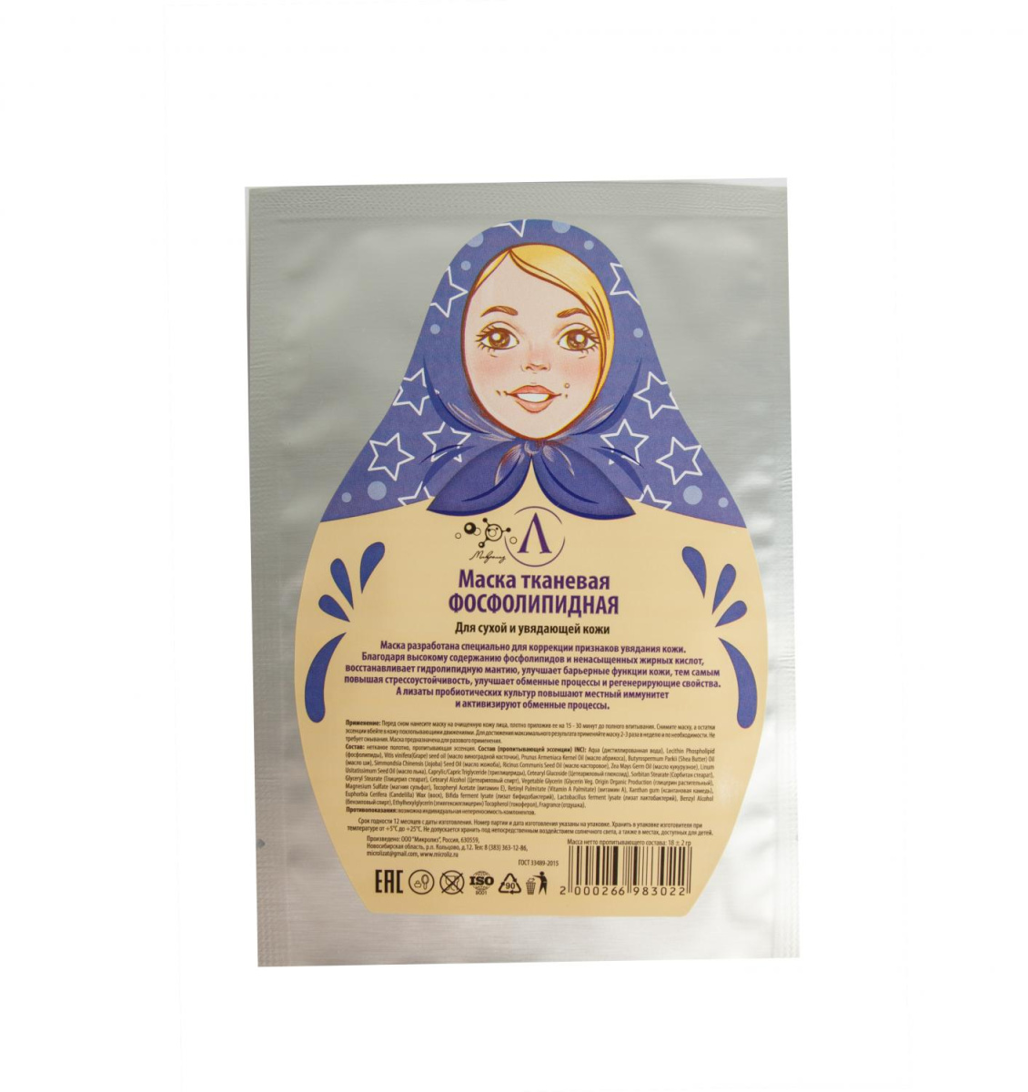 МАСКА ДЛЯ ЛИЦА ФОСФОЛИПИДНАЯ, САШЕ ТКАНЬ 20 ГР МИКРОЛИЗ